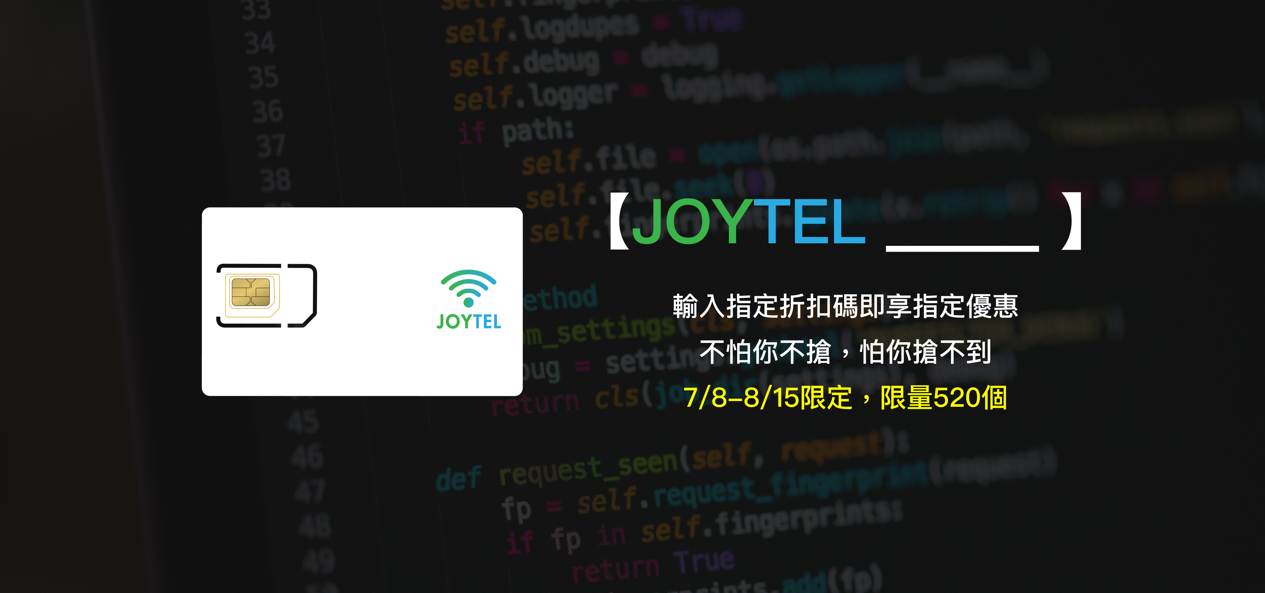 輸入折扣碼可享全單79折,僅限7/26單日可使用,日期請關注JOYTEL的FB/及官方LINE帳號。