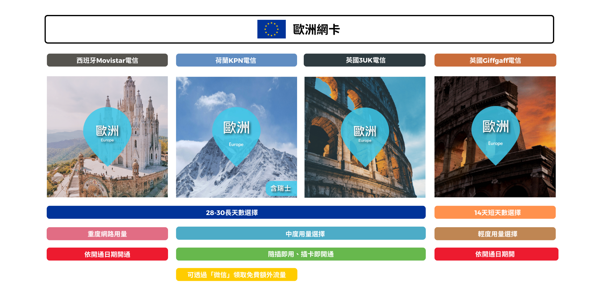 Movistar、KPN、TDC、Giffgaff、3UK網卡這邊通通都有!