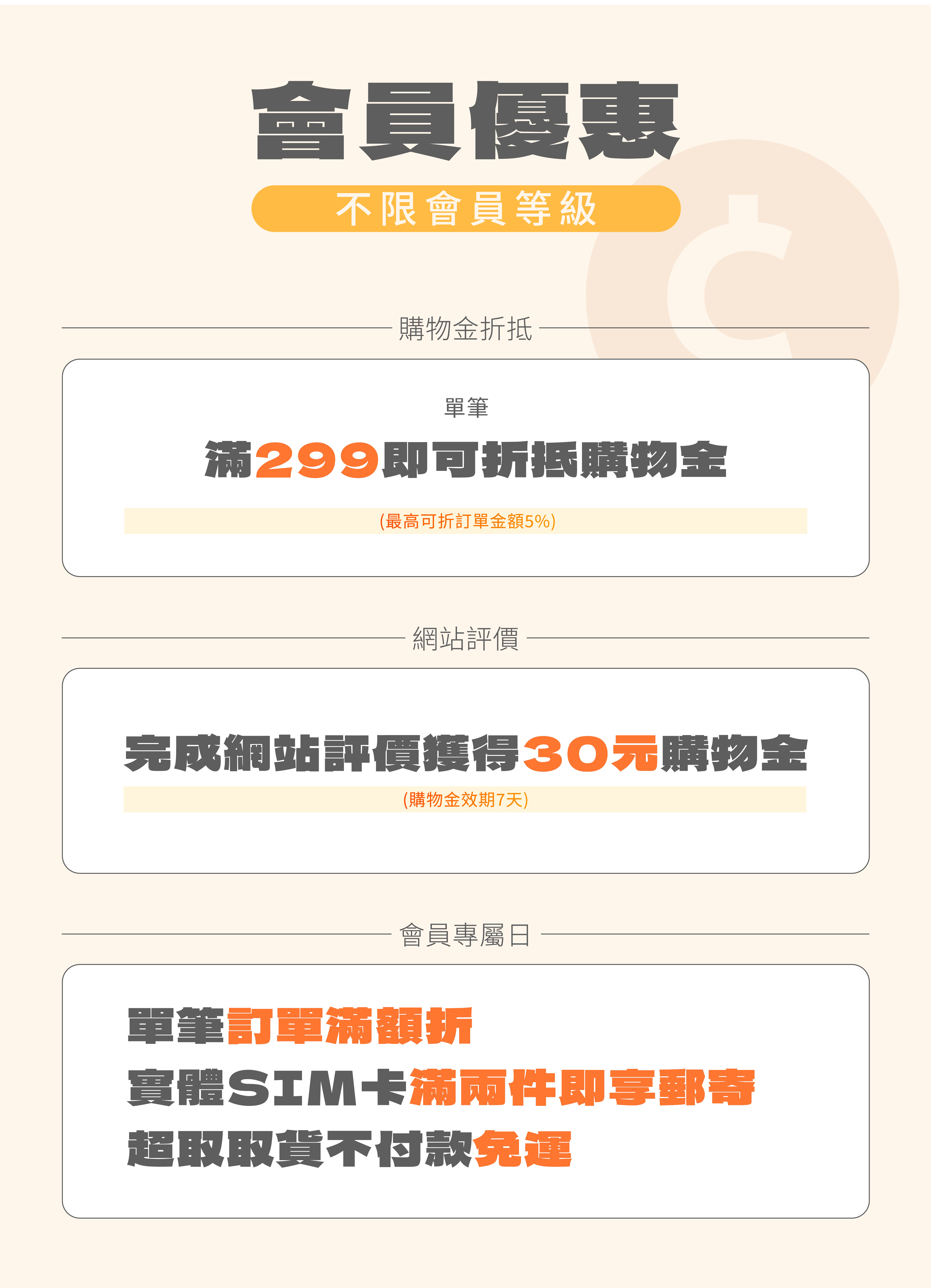 以下是會員等級一覽
