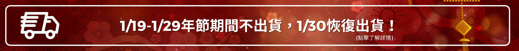 1/19 - 1/29期間暫停出貨,1/30恢復出貨。