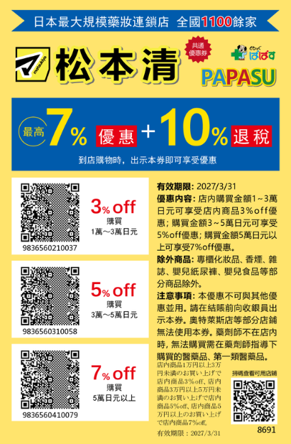 【松本清、Bic camera、唐吉訶德愛電王Sundrug、可開嘉來】最高7%off,退稅10%